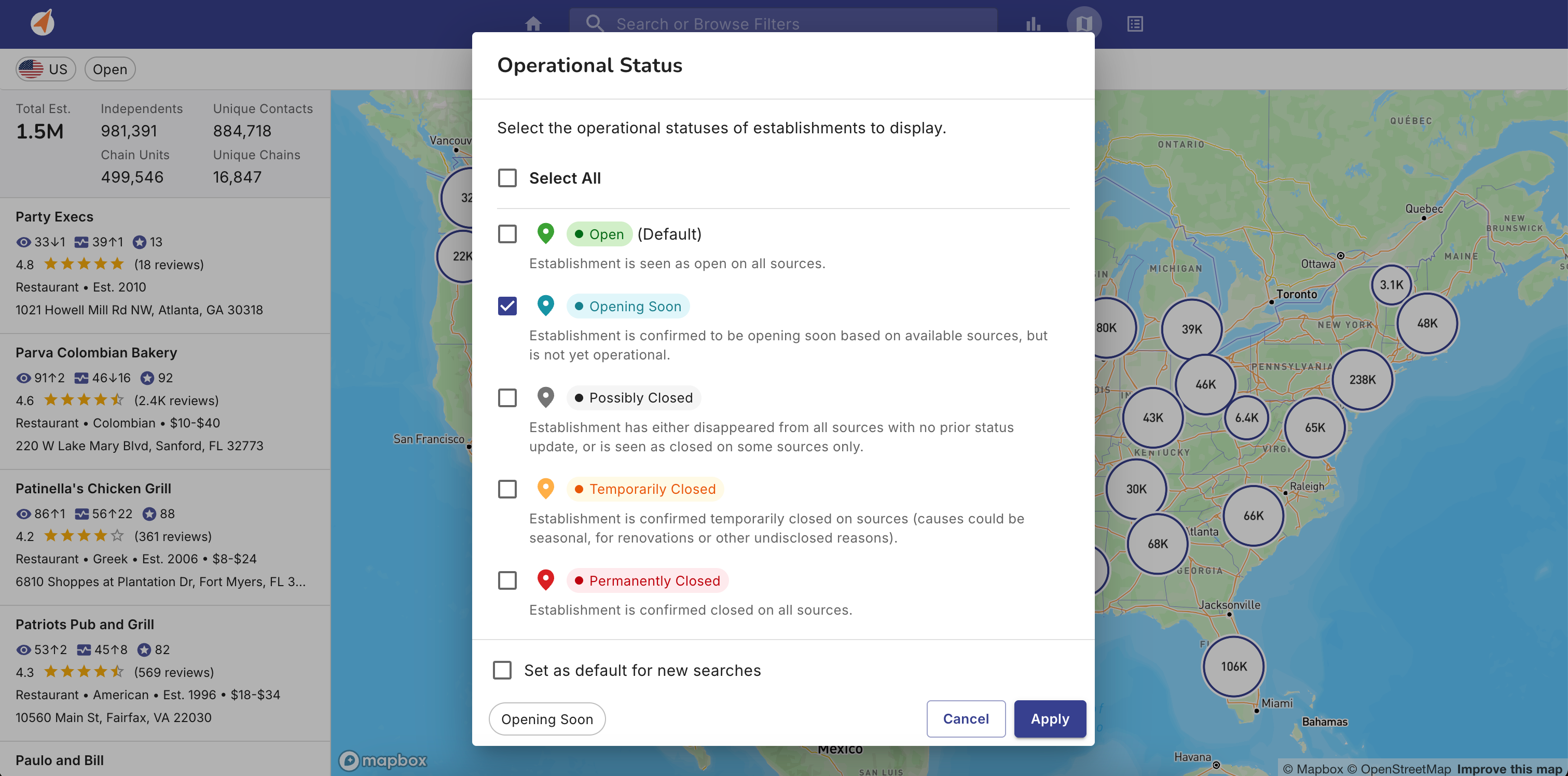 A brand new “First Seen as Open” field indicates the date an establishment is observed as officially open, enabling greater transparency and strategic insights.
